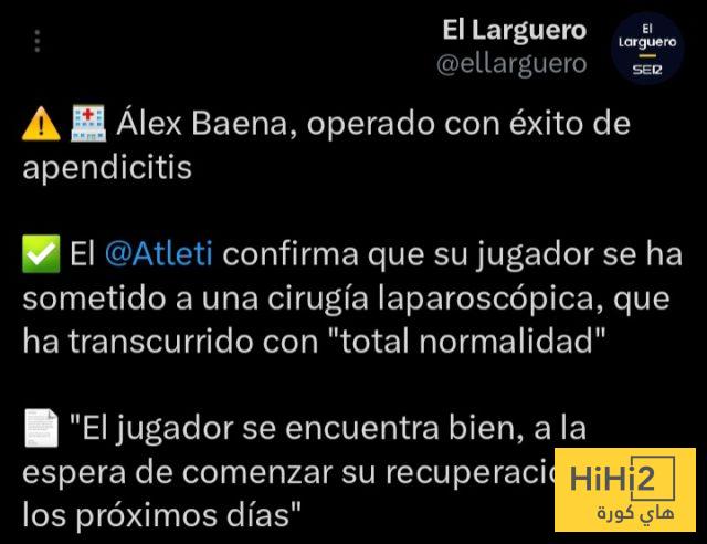 الأتليتي أكد أن العملية سارت بشكل طبيعي تمامًا، أما اللاعب فهو في حالة جيدة.