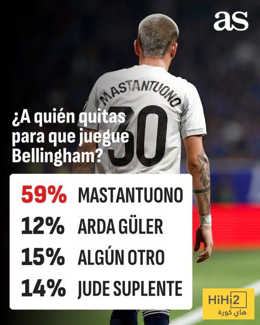 أظهرت النتائج أن 59% من المشاركين يرون أن اللاعب الشاب ماستانتونو هو من يجب أن يخرج من التشكيلة لإفساح المجال أمام بيلينغهام، فيما حصل أردا غولر على نسبة 12% من الأصوات، بينما اختار 15% لاعبًا آخر.
