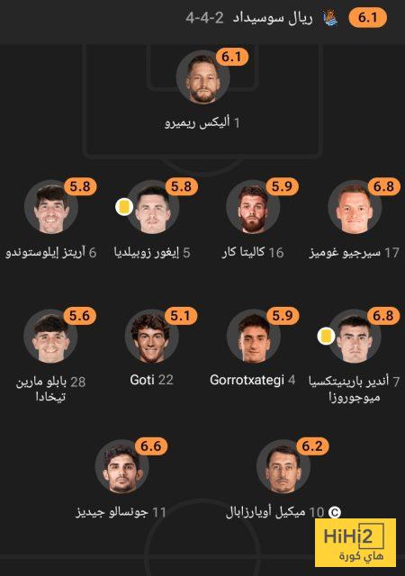 إليكم تقييم ريال سوسيداد في الشوط الأول أمام ريال مدريد: