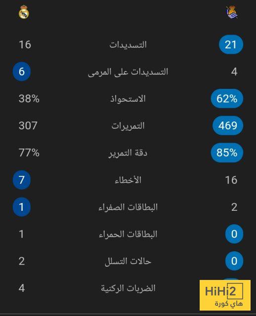 الريال في المركز الأول برصيد 12 نقطة من 4 مباريات بينما سوسيداد في المركز السابع عشر.