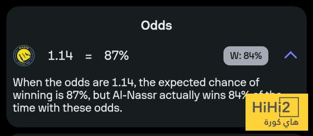 نسبة فوز النصر تصل إلى 84%، بينما تتوزع الـ16% المتبقية بين التعادل والهزيمة.