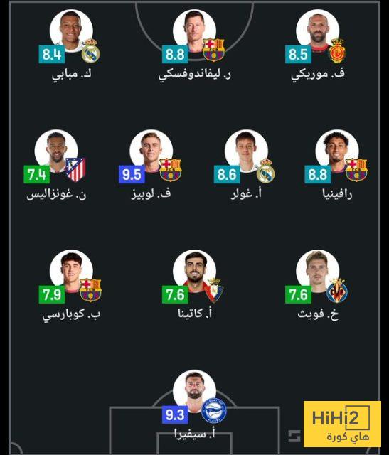 هاي كورة – اكتسح برشلونة التشكيلة المثالية للجولة الرابعة من الليغا بوجود أربعة من لاعبيه هم رافينيا ، كوبارسي ، ليفاندوفسكي وأخيرًا فيرمين لوبيز ، الذي حصل على أعلى تقييم في الجولة.