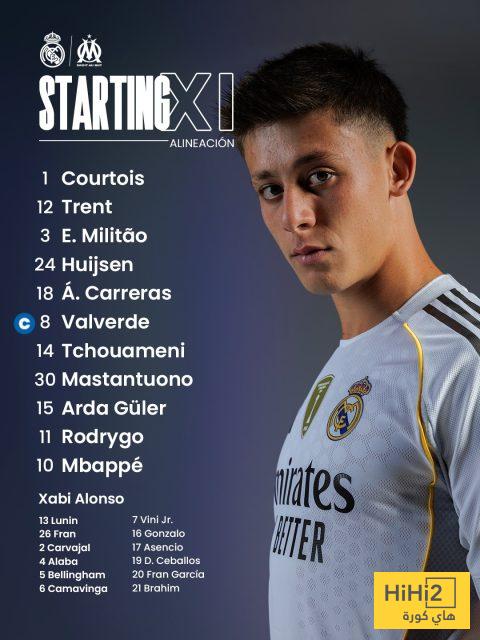 هاي كورة – أعلن المدرب تشابي ألونسو عن تشكيلة ريال مدريد الرسمية لمواجهة مارسيليا ، وشهدت التشكيلة الأساسية غياب النجم فينيسيوس جونيور.