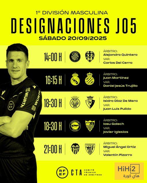 هاي كورة – أعلنت رابطة الدوري الإسباني لكرة القدم عن تعيين الحكم خوان مارتينيز لإدارة مباراة ريال مدريد وإسبانيول، التي ستقام غدًا السبت على ملعب سانتياغو برنابيو، ضمن منافسات الجولة الخامسة من “الليغا”، وذلك في تمام الساعة الخامسة والربع بتوقيت المملكة العربية السعودية ومصر.