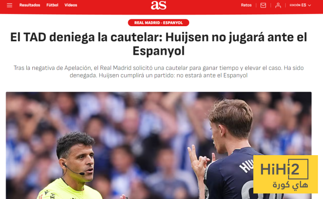 هاي كورة – أكدت صحيفة آس الإسبانية أن لاعب ريال مدريد، هويسين، لن يشارك في المباراة المقبلة أمام إسبانيول، بعد رفض محكمة التحكيم الرياضي استئناف النادي بشأن البطاقة الحمراء التي نالها.