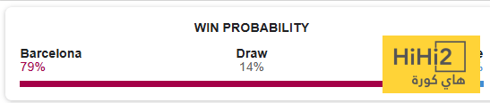 نسبة فوز برشلونة تصل الى 79 % ، والتعادل 14 % أما الخسارة لا تتجاوز الـ 7 %.
