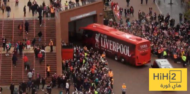 جمهور ليفربول حرص على استقبال الفريق خارج ملعب الأنفيلد و الهتاف لهم من أجل الفوز في الديربي المرتقب.