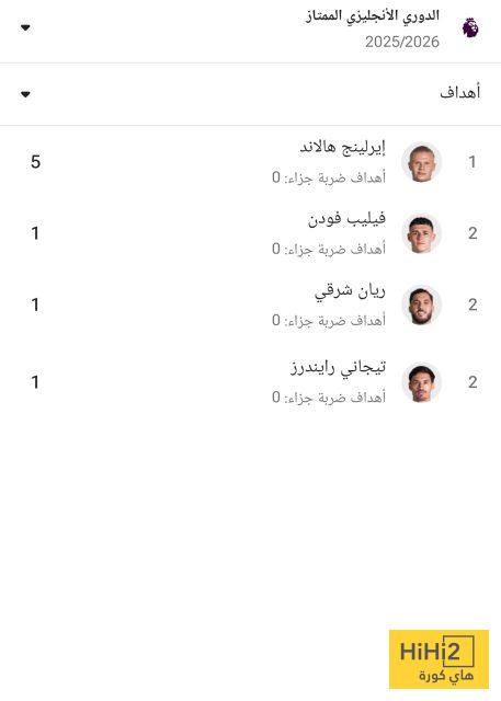 ويتصدر هالاند قائمة هدافي السيتي في بطولة الدوري هذا الموسم، حيث سجل 5 أهداف حتى الآن.