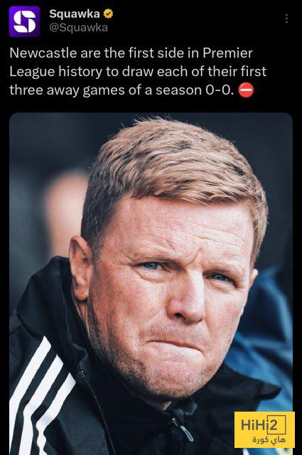 هاي كورة – وفقًا للإحصائيات، أصبح نادي نيوكاسل يونايتد أول فريق في تاريخ الدوري الإنجليزي الممتاز يتعادل سلبياً 0-0 في أول ثلاث مباريات خارج أرضه خلال الموسم الواحد.