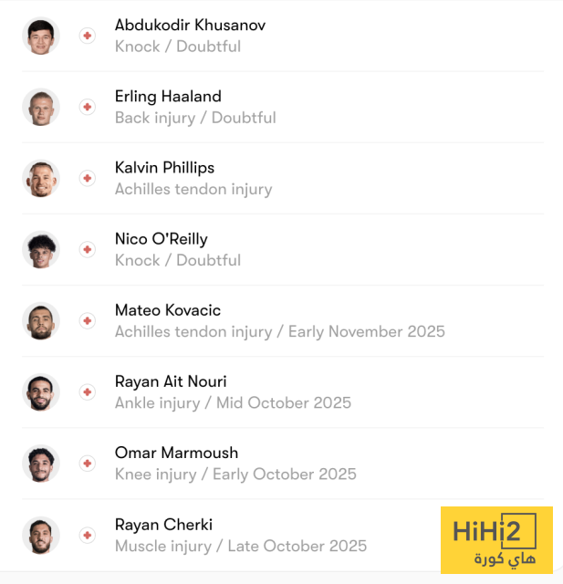 وبالرغم من ذلك، لكن جاءت قائمة إصابات السيتي قبل اللقاء طويلة، حيث اشتملت على بعض الأسماء التي قد يحتاج إليها المدرب الإسباني في اللقاء.