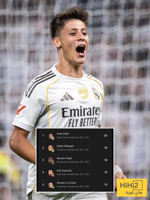 هاي كورة – يتصدر أردا غولر ، نجم ريال مدريد ، قائمة أكثر لاعبي الليغا صناعة للفرص التهديفية في الموسم الحالي ، بصناعته لـ 20 فرصة بمعدل 4.10 فرصة في الـ 90 دقيقة .
