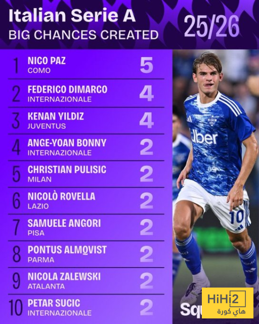 هاي كورة- كشفت شبكة سكواكا عن قائمة بأسماء افضل اللاعبين في صناعة أكبر عدد من الفرص الكبيرة في الدوري الايطالي هذا الموسم حتى الآن.