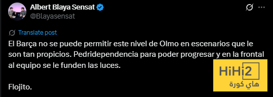 “برشلونة لا يستطيع تحمل أولمو بهذا الشكل ، خصوصا في مباريات تفصل على مقاسه ، الفريق يعتمد بشكل مفرط على بيدري ليتقدم ، وعندما يصل الى مشارف المنطقة تنطفئ الانوار تماما”.