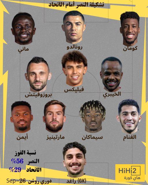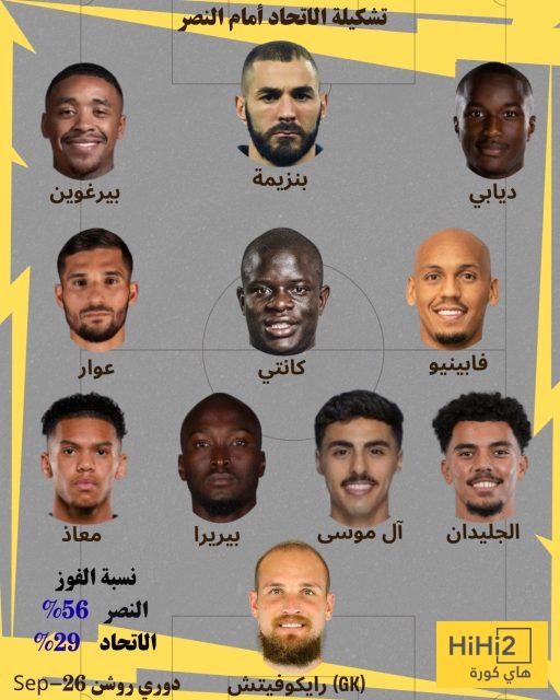 هاي كورة – كشف موقع هاي كورة عن تشكيلة الاتحاد والنصر المتوقعة لقمة الليلة في الجولة الرابعة من دوري المحترفين السعودي، حيث سيلتقي الفريقان مساء اليوم الجمعة وفق التوقيت المدرج في جداول الموقع لكل دولة حول العالم.