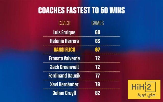 هاي كورة- حقق هانسي فليك إنجازاً لافتاً بوصوله إلى 50 فوزاً مع برشلونة بعد الانتصار على ريال أوفييدو، ليصبح ثالث أسرع مدرب في تاريخ النادي يصل لهذا الرقم، بعدما حققه في 67 مباراة فقط، ليأتي خلف كل من لويس إنريكي وهيلينيو هيريرا، ومتقدماً على عدد من أبرز مدربي الفريق عبر التاريخ.
