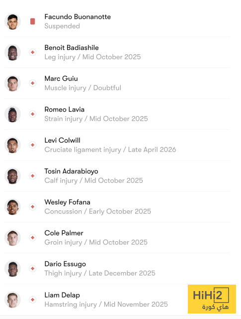 وتأتي أهم الغيابات أمام برايتون، ليام ديلاب، وليفي كولويل، وويسلي فوفانا، وكول بالمر.