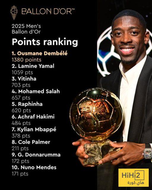 وحصد ديمبلي 1380 نقطة مقابل 1059 نقطة لنجم برشلونة، كما نال 73 صوتًا من تصويت الصحفيين في المركز الأول من أصل 100، فيما اكتفى يامال بـ11 صوتًا فقط.