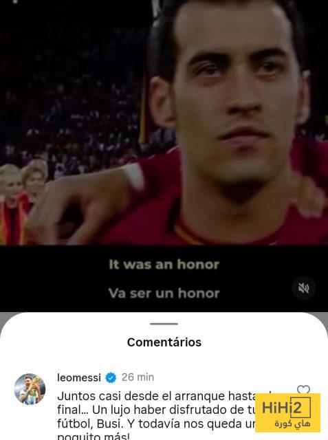 وكتب ميسي لبوسكيتس “معًا منذ البداية تقريبًا وحتى النهاية، كان من الفخامة أن نستمتع بكرتك، وما زال يتبقّى لنا القليل بعد”.