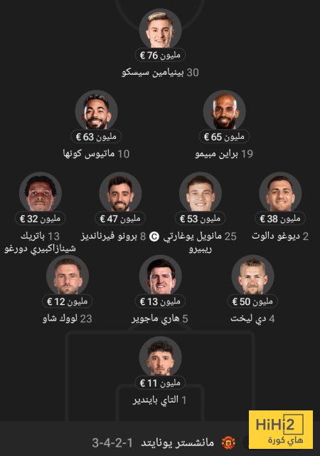 القيمة التسويقية لتشكيلة مانشستر يونايتد امام برينتفورد بلغت 460 مليون يورو.