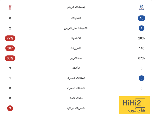 إحصائيات الشوط الأول: