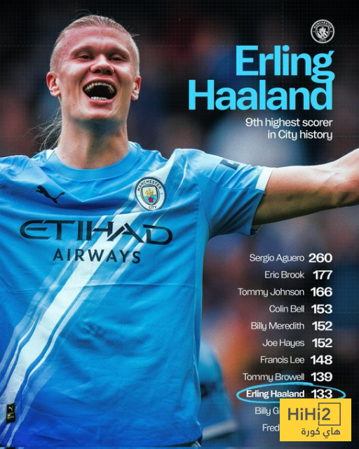 هالاند وصل الى هدفه رقم 133 مع مانشستر سيتي بعد ثنائيته ضد بيرنلي ، ويحتاج النرويجي الآن الى 127 هدف لمعادلة الرقم القياسي للاسطورة كون اغويرو الهداف التاريخي للسيتي .