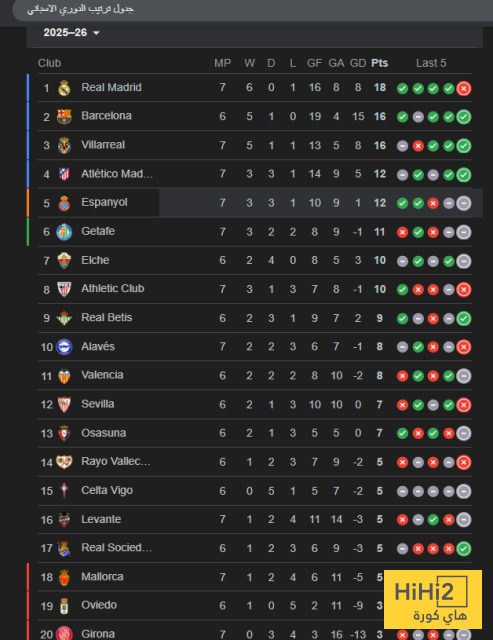 برشلونة بـ 16 نقطة من أصل 18، سجل 19 هدفا واستقبل 4 أهداف