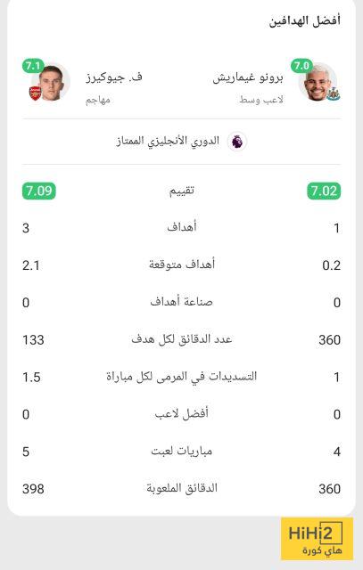 فيما يلي مقارنة بين هدافي نيوكاسل يونايتد وأرسنال: