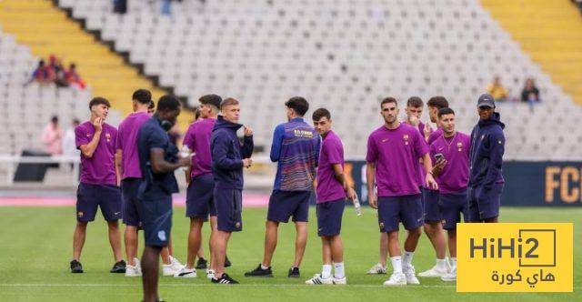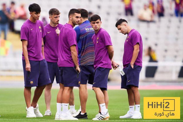 لاعبو برشلونة بعد وصولهم إلى ملعب مونتجويك الأولمبي حرصوا على تفقد العشب قبل الدخول إلى غرف الملابس.
