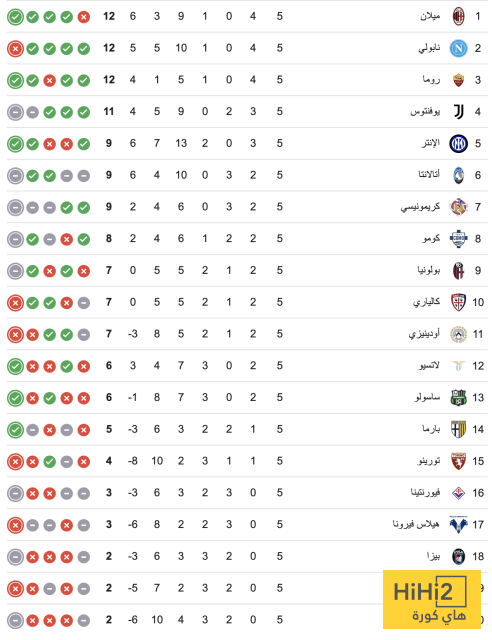 هاي كورة – انتهت الجولة الخامسة من الدوري الإيطالي بحدوث تغييرات كثيرة على مستوى المراكز الأولى في جدول الترتيب.