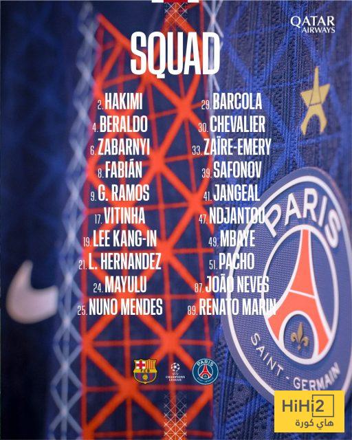 قائمة باريس سان جيرمان المسافرة لمواجهة برشلونة: