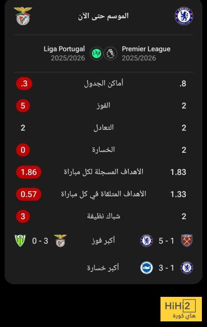 إليكم نتائج تشيلسي و بنفيكا هذا الموسم في الدوري الانجليزي و البرتغالي قبل مواجهة الابطال: