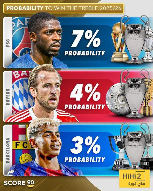 هاي كورة- كشف الذكاء الاصطناعي عن الاندية الاوروبية الاوفر حظا لتحقيق انجاز الثلاثية في الموسم الحالي من خلال الجمع بين القاب دوري الابطال ، الدوري المحلي و الكاس المحلية .