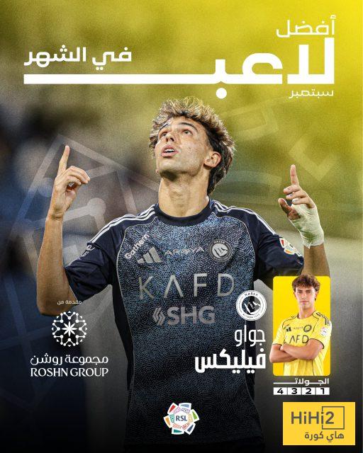 هذا الأداء اللافت لم يمر مرور الكرام، حيث حصد فيليكس جائزة أفضل لاعب في شهر سبتمبر 2025، تقديرًا لتألقه المستمر وتأثيره الكبير في نتائج الفريق النصراوي.