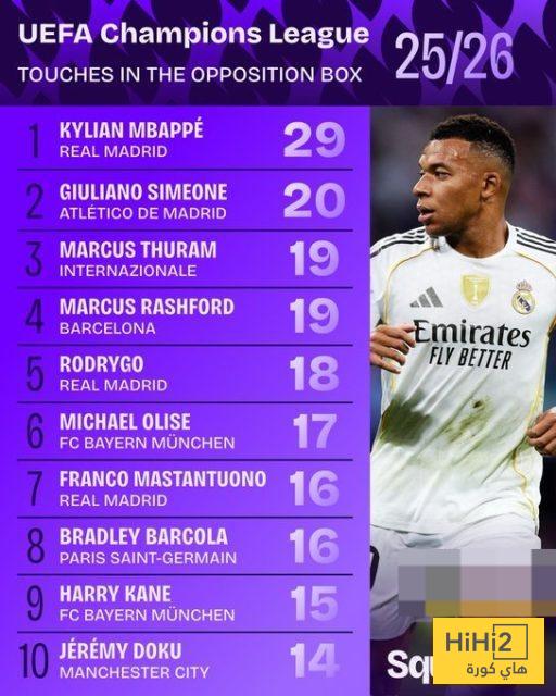 هاي كورة – شهدت بطولة دوري أبطال أوروبا هذا الموس تفوقًا واضحًا للنجم الفرنسي كيليان مبابي، مهاجم ريال مدريد، الذي تصدّر قائمة اللاعبين الأكثر لمسًا للكرة داخل منطقة جزاء المنافسين برصيد 29 لمسة حتى الآن.