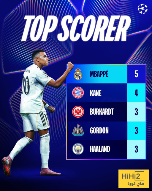 وتصدر كيليان مبابي، نجم ريال مدريد، القائمة برصيد 5 أهداف بفارق هدف عن وصيفه هاري كين، مهاجم بايرن ميونخ”.