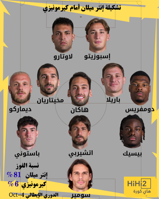 تشكيلة إنتر ميلان المتوقعة ضد كريمونيسي في الدوري الإيطالي