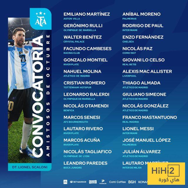 هاي كورة- كشف المدرب الارجنتيني ليونيل سكالوني عن قائمة لاعبي منتخب بطل العالم المعنيين بمواجهة منتخبي فنزويلا و بورتو ريكو وديا في العاشر و ال13 اكتوبر الحالي في التوقف الدولي الثاني للموسم الرياضي.