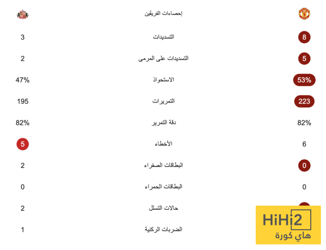 إحصائيات الشوط الأول: