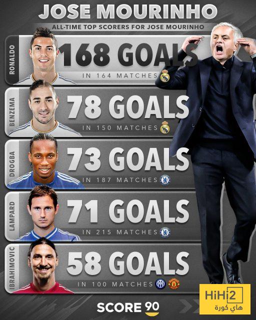 1- البرتغالي كريستيانو رونالدو افضل هداف في مشوار المدرب البرتغالي خوسيه مورينيو برصيد 168 هدفا في 164 مباراة بألوان ريال مدريد