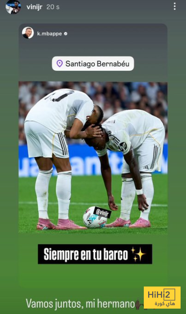 هاي كورة- نشر كيليان مبابي ، نجم ريال مدريد، صورة جديدة له مع فينيسيوس من مباراة فياريال عبر خاصية القصص بحسابه الرسمي على انستغرام.