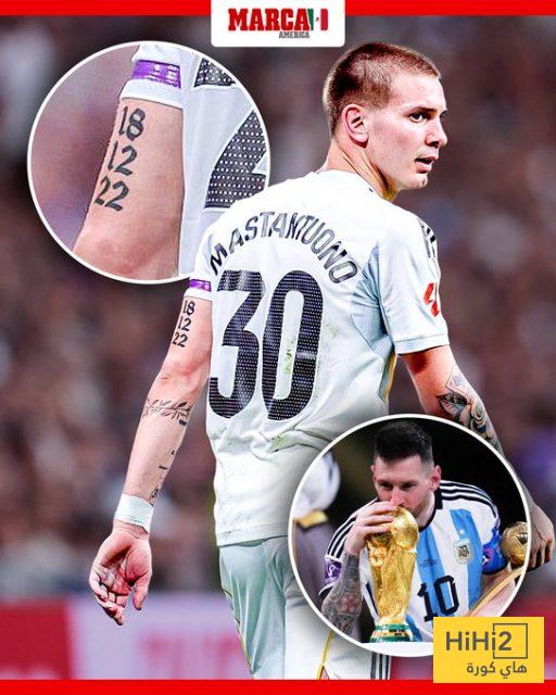 ماستانتونو يعبر عن ذلك من خلال وشم وشمه على ذراعه بتاريخ تتويج منتخب التانجو بالبطولة بعد تغلبه على نظيره الفرنسي.