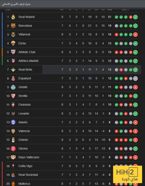 اشبيلية في المركز العاشر بـ 10 نقاط ، سجل 11 واستقبل 10 اهداف