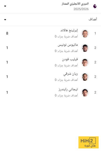 ويتصدر هالاند قائمة هدافي السيتي في الدوري هذا الموسم، حيث سجل 8 أهداف حتى الآن.