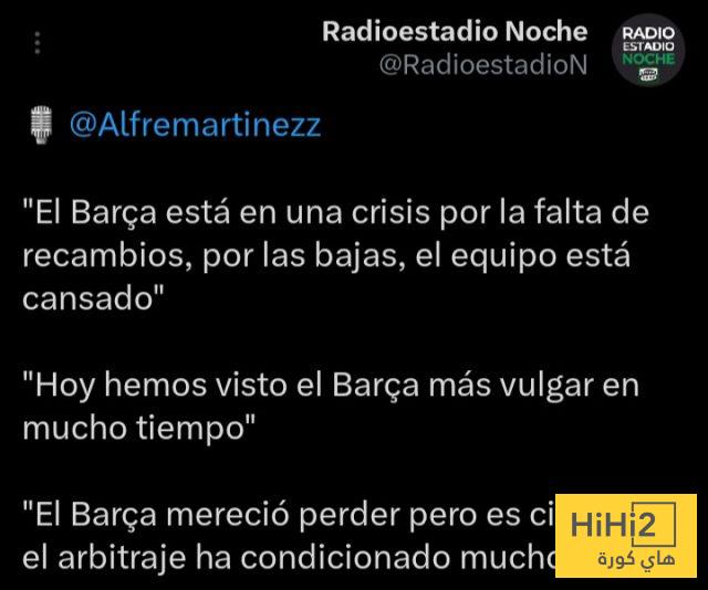 “برشلونة في أزمة بسبب افتقاره إلى البدلاء، إضافة إلى الغيابات، الفريق منهك”.