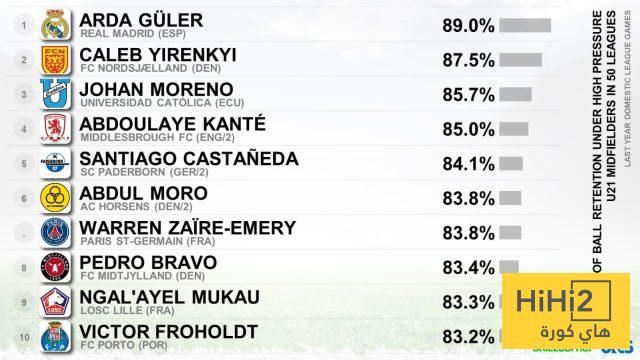 هاي كورة: ذكرت صحيفة ماركا أن لاعب ريال مدريد الشاب أردا غولر أصبح نجمًا صاعدًا بارزًا، حيث سجل أعلى نسبة احتفاظ بالكرة تحت الضغط العالي بين لاعبي أقل من 21 عامًا، بنسبة 89%.