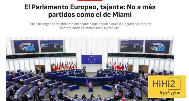 هاي كورة- رد البرلماني الاوروبي اليوم، الثلاثاء، بشكل واضح على قرار اليويفا بإعطاء الضوء الاخضر لإقامة مباراة فياريال وبرشلونة خارج الحدود الاسبانية وتحديدا في ميامي يوم 20 ديسمبر.