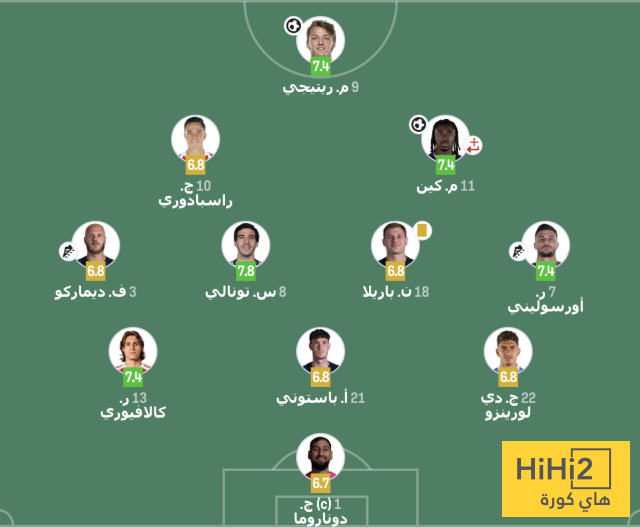 وتتقدم إيطاليا بهدفين دون رد من هدفين سجلهما مويس كين، وماتيو ريتيغي، لكن لاعب الوسط ساندرو تونالي كان هو الأكثر تقييمًا في الشوط الأول بحسب موقع سوفا سكور.