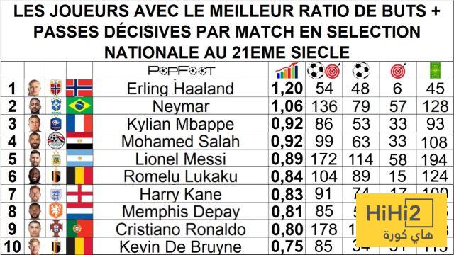 احصائيات موقع بوب فوت تؤكد ان هالاند يتصدر الترتيب العالمي في القرن الحالي من حيث معدل المساهمة التهديفية مع منتخب بلاده .