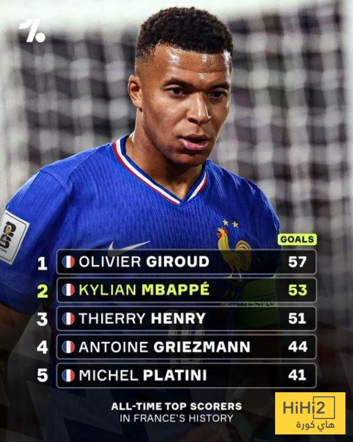 مبابي سجل مع المنتخب الفرنسي 53 هدفًا حتى الآن، ويفصله 4 أهداف فقط ليصبح الهداف التاريخي لفرنسا متساويًا مع أوليفير جيرو، كما يمكنه تحطيم هذا الرقم بسهولة.