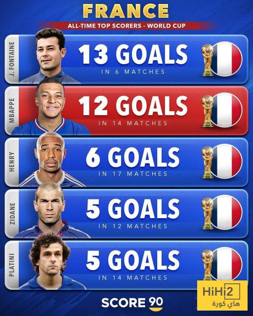 فونتين سجل مع فرنسا في نهائيات المونديال 13 هدفا في 6 مباريات بدورة واحدة في مونديال 1958 بينما مبابي سجل حتى الان 12 هدفا خلال 14 مباراة بدورتين نهائيتين بلغ خلالهما الديوك المباراة النهائية في 2018 و 2022.
